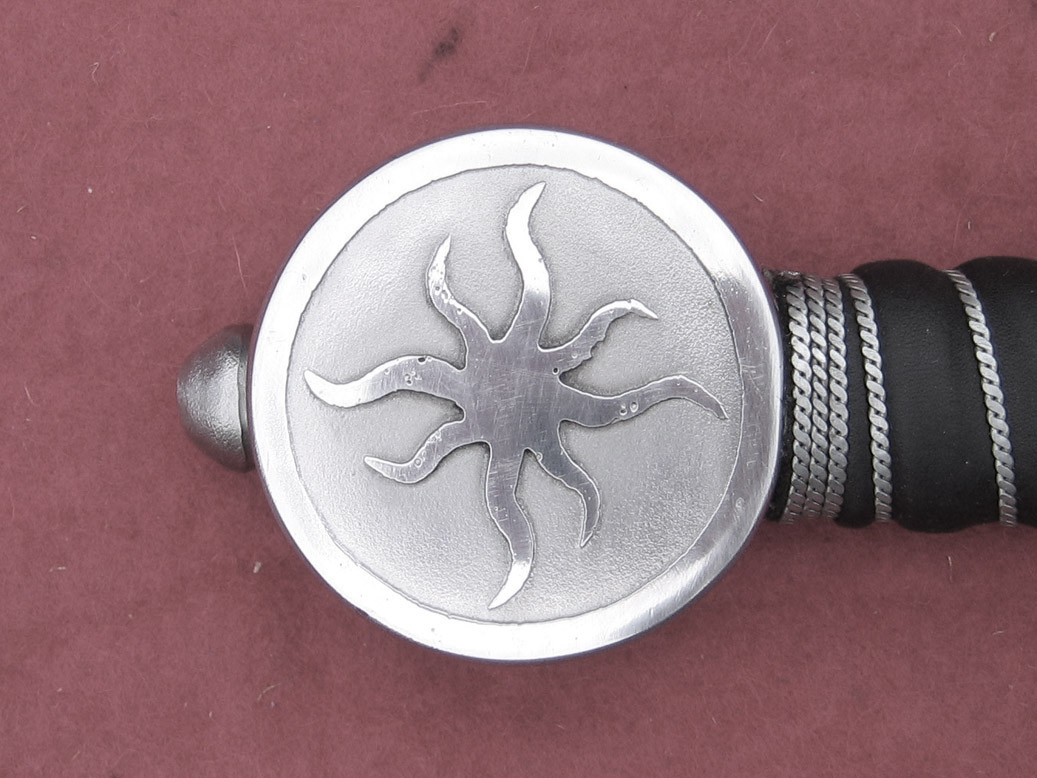 Leptání je stará technika, kterou se dá do povrchu trvale zaznamenat žádaný obraz. Při pozitivním leptu se odleptává materiál (tj. odstraní materiál) z míst kresby a okolí zůstává na původní úrovni. Při negativním leptu se odleptává okolí a kresba zůstává na původní úrovni. Tento způsob leptu vyžaduje umístění požadovaného obrazce do rámečku či jiného ohranění. Při leptání zbraní používám hluboký lept (až 0,4 mm), který je jasně rozeznatelný i pohmatem. Je to sice na úkor jemnosti leptu, ale lept se tolik neničí používáním zbraně ani její údržbou a je částečně odolný i proti korozi. Cena leptu je závislá na složitosti a velikosti leptaného obrazce a tvoří se individuálně podle zadání. Lepty na čepeli jsou standardně umístěny na střed čepele v podélném směru.